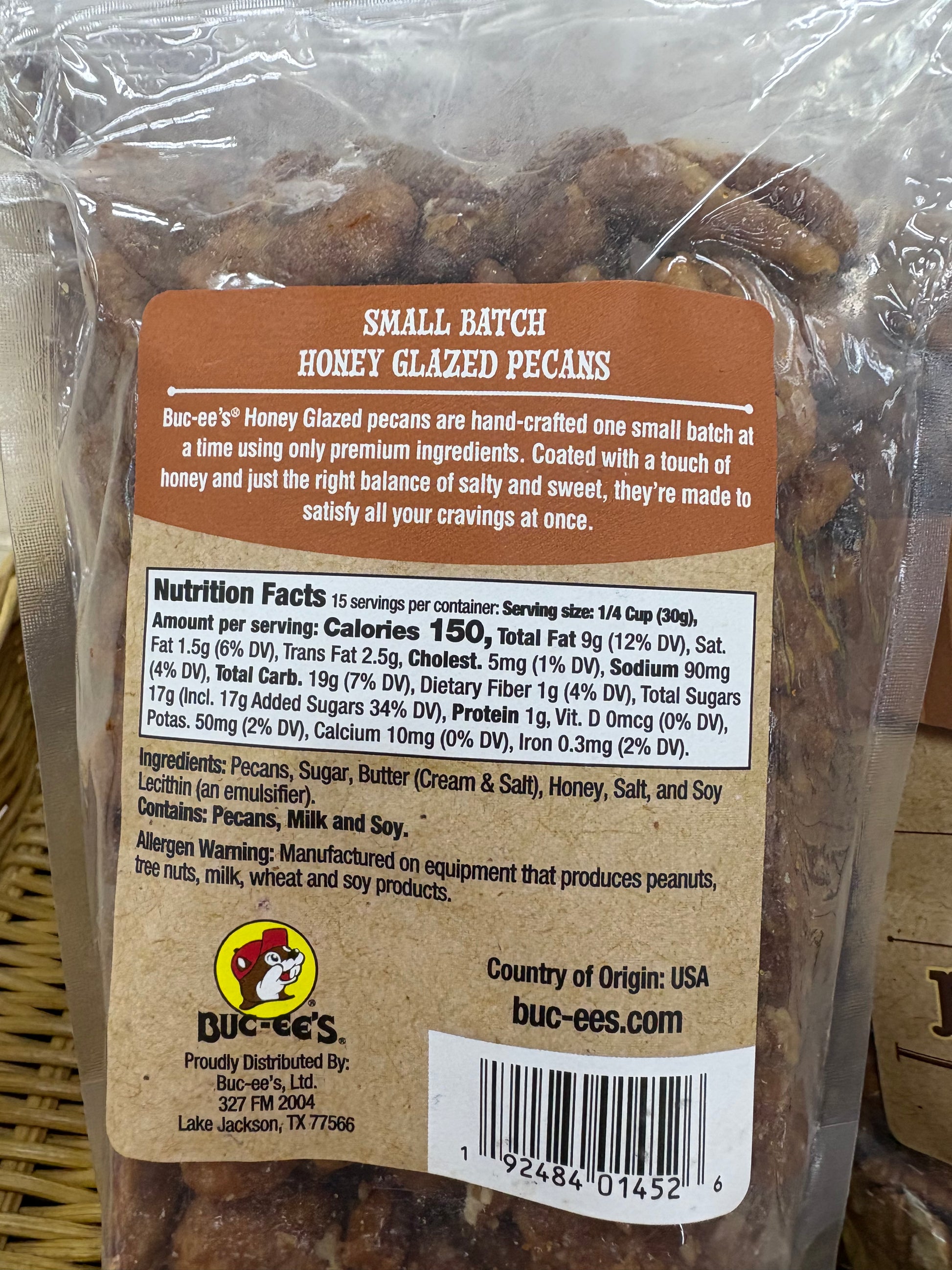 Buc-ee’s Small Batch Honey Glazed Pecans 16 oz Bag